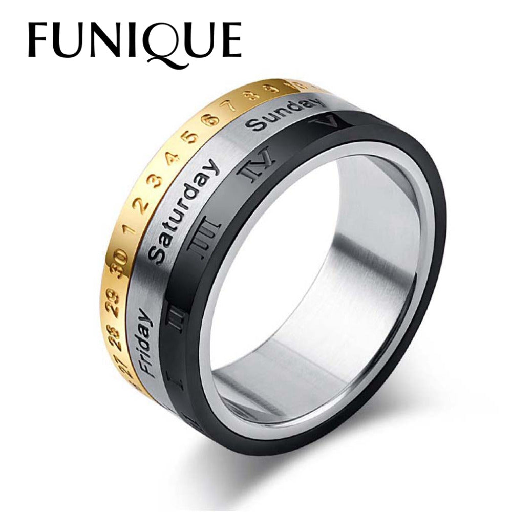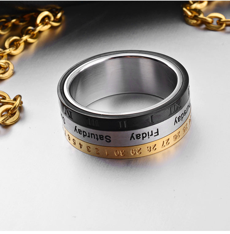 This fashionable and unique design Titanium Steel Rotating Date Calendar Ring is a perfect for daily use and it's a rotatable ring for killing boredom. Can be a perfect gift for friends and family.